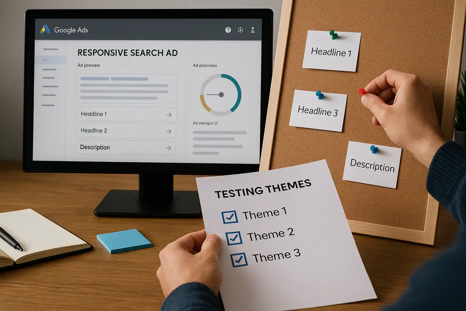 تست تمها (Theme Testing) یکی از پیشرفتهترین روشها برای کشف بهترین پیامهای تبلیغاتی در RSA است. در این رویکرد، شما پیامها را بر اساس تمها یا موضوعات مشخص دستهبندی کرده و عملکرد هر تم را در شرایط واقعی بررسی میکنید. این کار باعث میشود به جای تمرکز صرف بر روی تککلمات یا عبارات، متوجه شوید که کدام «ایده محوری» بیشترین تاثیر را بر مخاطب دارد.